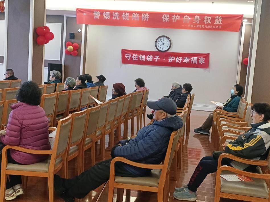 同一时间,静海支公司走进康宁津园养老社区,为老年群体量身搭建了“银发课堂”,聚焦老年人身边的常见骗局展开宣传。防范非法集资、反洗钱、养老规划、天津“惠民保”……考虑到老年人的视力特点和认知习惯,他们特意将PPT字号加大到28号,还将案例改成“李奶奶买保健品被骗6万”这类发生在身边的真实事件,让老人们更容易理解和接受。讲座结束后,78岁的刘爷爷拉着员工急切地说:“姑娘,我把身份证、银行卡都带来了,你帮我看看有没有风险?”