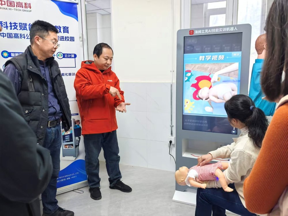 11月3日-4日,中国高科集团组织专业技术团队为十渡中心小学的师生提供了2场急救科普公益培训,师生们通过人工智能急救科普培训机器人,实现了理论与实践的双重学习,助力师生逐渐掌握急救技能。通过人机协同的智慧教学模式,不仅实现了急救技能培训的准确性与交互性,也推动了AI技术在基础教育安全场景中的落地应用,为构建智慧校园安全体系贡献力量。