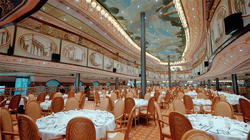 全船设计以地中海文明为灵感源泉,巧妙地将油画、雕塑与浮雕等艺术元素以及经典的地中海建筑风格融入船上每一处角落;还有《风情地中海》歌舞秀、“金色尼罗河”等一系列主题派对活动,为宾客带来原汁原味的地中海风情,点燃宾客的海上狂欢热情。