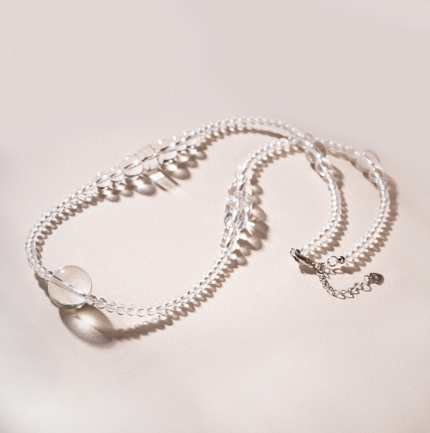 “碎浪星光白水晶项链”以299元的价格,成为轻奢项链中的热门之选。项链通体采用纯净剔透的白水晶,中间一颗大圆珠作为视觉焦点,八棱白水晶错落点缀其间,勾勒出柔美线条与丰富层次感。白水晶的澄澈质感搭配简约的链条设计,既提升了整体的时尚感与高级感,又能衬托出佩戴者优雅柔和又不失清冷的气质,无论是搭配衬衫还是连衣裙,都能成为造型的点睛之笔。
