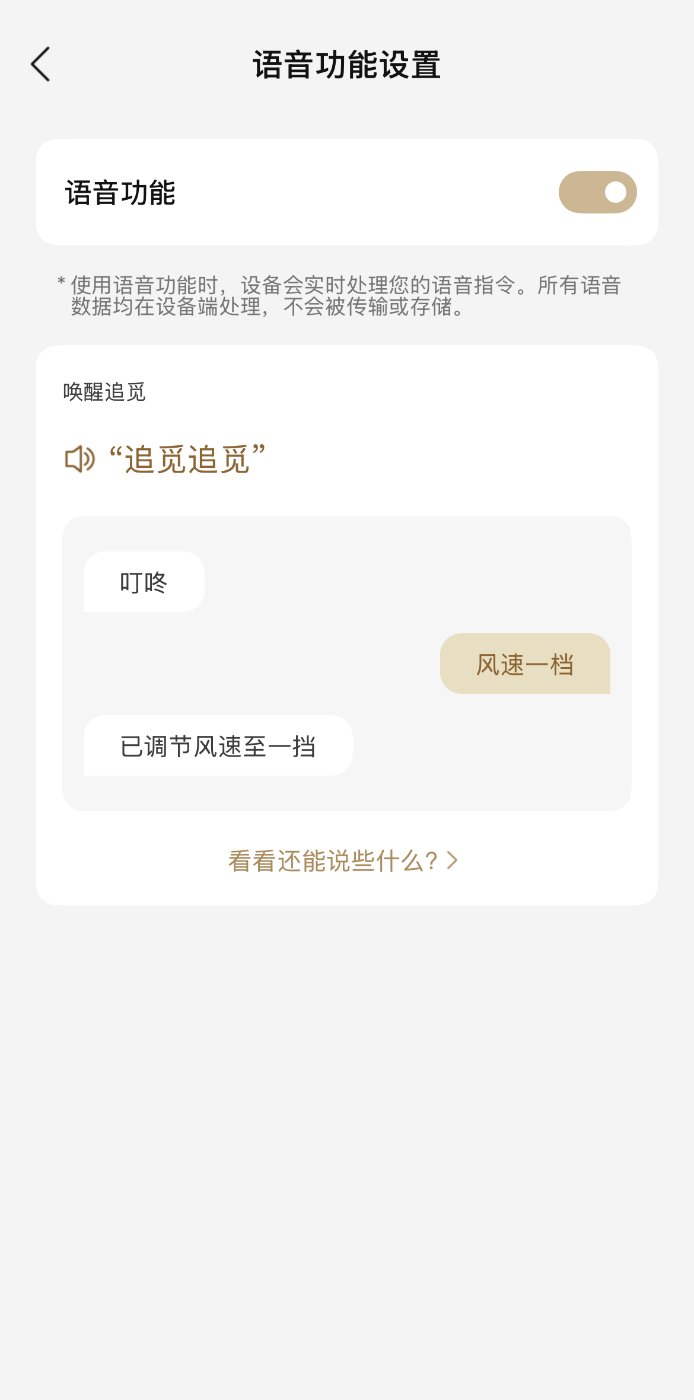除硬性能之外,PM30的智能交互体验同样可圈可点。设备支持无接触开机——用户靠近即可自动唤醒,响应灵敏且自然。其内置的毫米波雷达与七维传感器可识别人体移动,并实现风向的智能跟随。测试中我们发现,当人在房间内移动时,出风方向能够随之调整,最大送风角度可达120°,真正实现了“风随人动”。
