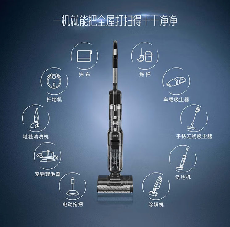 传统家庭需备齐吸尘器、洗地机、除螨仪才能应对全屋清洁,但工具堆积占空间,操作也烦琐。三合一多功能机型成为新趋势,尤其适合中小户型。例如,一台整合地毯吸尘、地板洗地、手持除螨功能的设备,能覆盖客厅、卧室、厨房等多场景。地毯模式需配备防缠毛滚刷,避免毛发缠绕;洗地功能应支持微水湿擦,实木地板也能即拖即干;除螨模式则依赖高频拍打与大吸力,除螨率需达99%以上。根据中国家用电器研究院测试标准,多功能集成产品需通过集尘性能、湿拖效果、除菌除螨等核心维度认证。