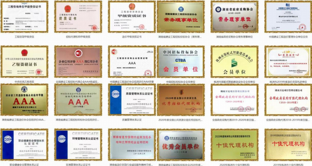 二十年耕耘收获累累硕果。公司不仅斩获"全国公共资源交易优秀招标代理机构""全国政府采购百强代理机构"等多项国家级荣誉,更成为全省首批造价咨询行业诚信服务精神文明创建示范企业。作为中国招标投标协会会员单位、省造价管理协会副理事长单位,公司积极参与行业法规政策编写,累计为近万人次提供行业培训,为构建公平建筑市场秩序贡献力量。从株洲国际赛车场到清水塘数字智造产业园,从湘江新城骨干路网到省级医院新建工程,千余项精品工程见证着湖南万达的专业实力与责任担当。